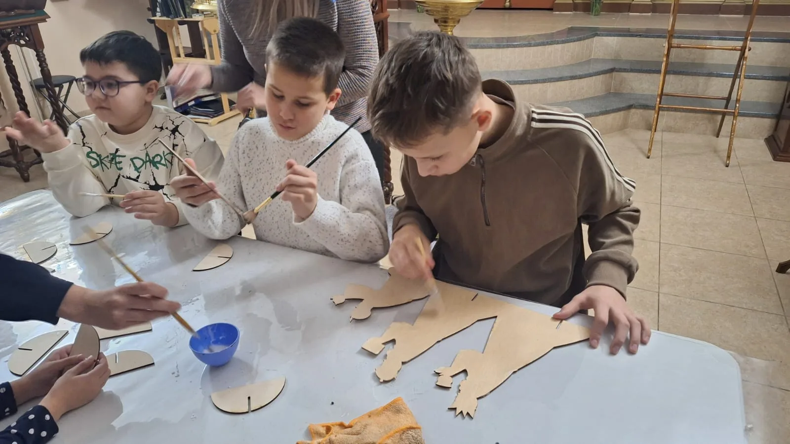 На творческом занятии дети повторили рождественские песни и продолжили делать поделки для вертепа. Скоро яркие фигурки украсят большой вертеп перед входом в храм!