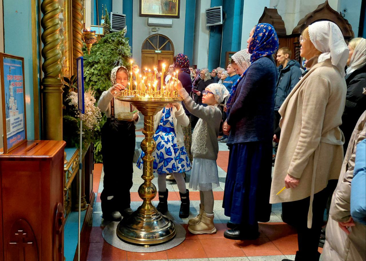 В эту тихую ночь богослужение посетили десятки прихожан, многие пришли семьями, с детьми, ведь Рождество — это семейный праздник.