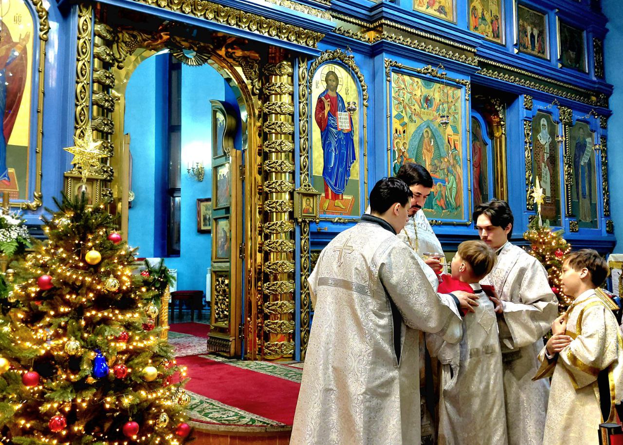 В ночь с 6 на 7 января 2026 года в Градо-Хабаровском соборе Успения Божией Матери были совершены рождественские богослужения ― Всенощное бдение и Божественная литургия.