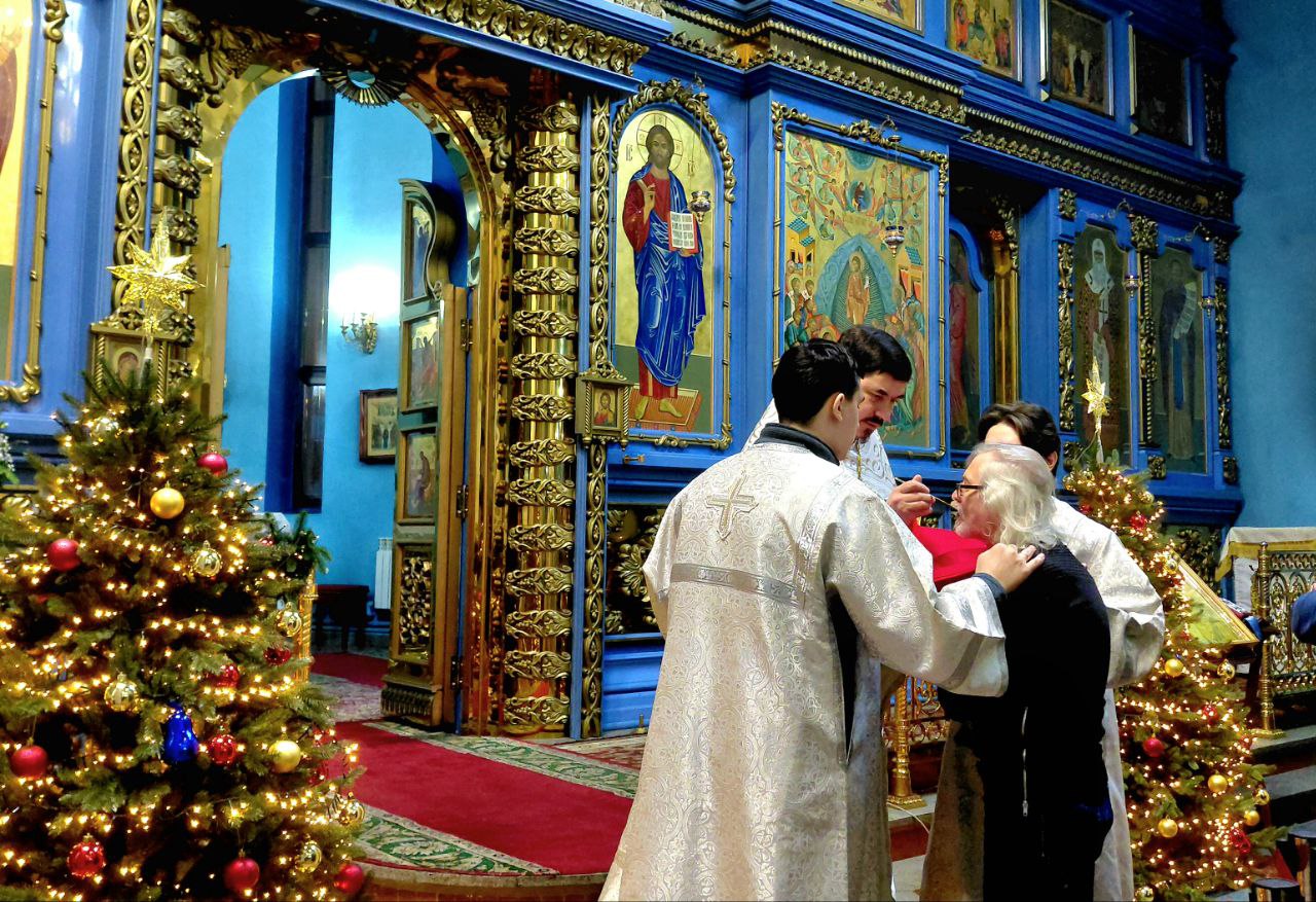 В завершение праздничной службы отец Дионисий поздравил всех со светлым праздником Рождества Христова.